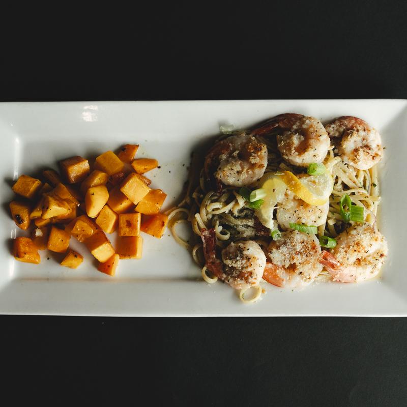 All entrees served with House or Caesar salad, veggies, and starch | *All chicken/fish served over garlic-sauced linguine • Over The Top: Grilled Candied Onions +$4.00 | Mushrooms +$4.00 | Gorgonzola +$4.00 | Demi Glace +$6.00 | Bourbon Cream Sauce +$6.00 | 4 Grilled Shrimp +$8.00